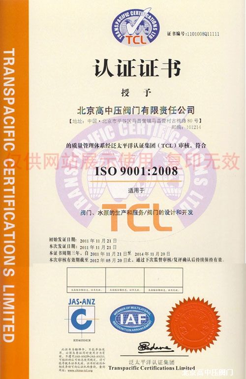 My company took the lead through the ISO9001: 2000 international management system certification, ISO14001 environmental management system certification, Pressure Vessel Safety Certificate, Norway Classification | Agency certification, and the right to operate import and export, to obtain eligibility to enter the international market, the implementation of standards : GB, Germany standard, Japanese standard, British standard. The main products are various types of high pressure ball valve, gate valve, globe valve, check valve, throttle valve, butterfly valve, electric valves, steam traps and other products. The company also produces non-standard, special valves, diameter from 10 mm to 3000 mm, the pressure from 10Mpa - 42Mpa, a total of over two thousand varieties and specifications, widely used in petroleum, chemical industry, metallurgy, chemical fiber, urban construction, power , water, building materials, cement and other industries, and China's CNPC, China Petroleum & Chemical Corporation, National Power Company and other units of materials collected? purchase suppliers. Trusted by the user and welcome. Some products have successively won the national silver medal, the National Key New Product Award and other honors.
